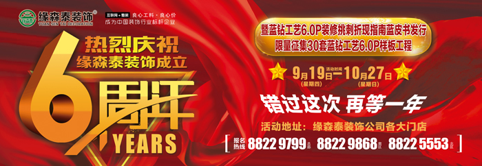 广东缘森泰装饰6周年 限量征集30套蓝钻工艺6.0P样板工程