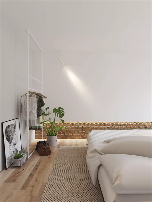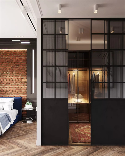 如果觉得落地衣架太占地,可以做一个内嵌敞开式衣柜,配玻璃推拉门,平时为了方便,你就开着半扇,这样放衣服比较方便,可以很好的悬挂“隔夜衣”。